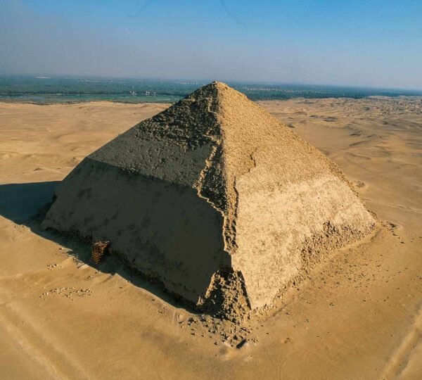 - Pyramid of Dahshur (The Red Pyramid): it has been built with limestone by King Senfru which is the first proper pyramid to be built in ancient Egypt & second largest pyramid in Egypt after the grand pyramid of Cheops in Giza & located about 10 kilometers to the South of Sakkara & it is about 100 meters in height and the length of each side of its square shaped base is 188 meters.